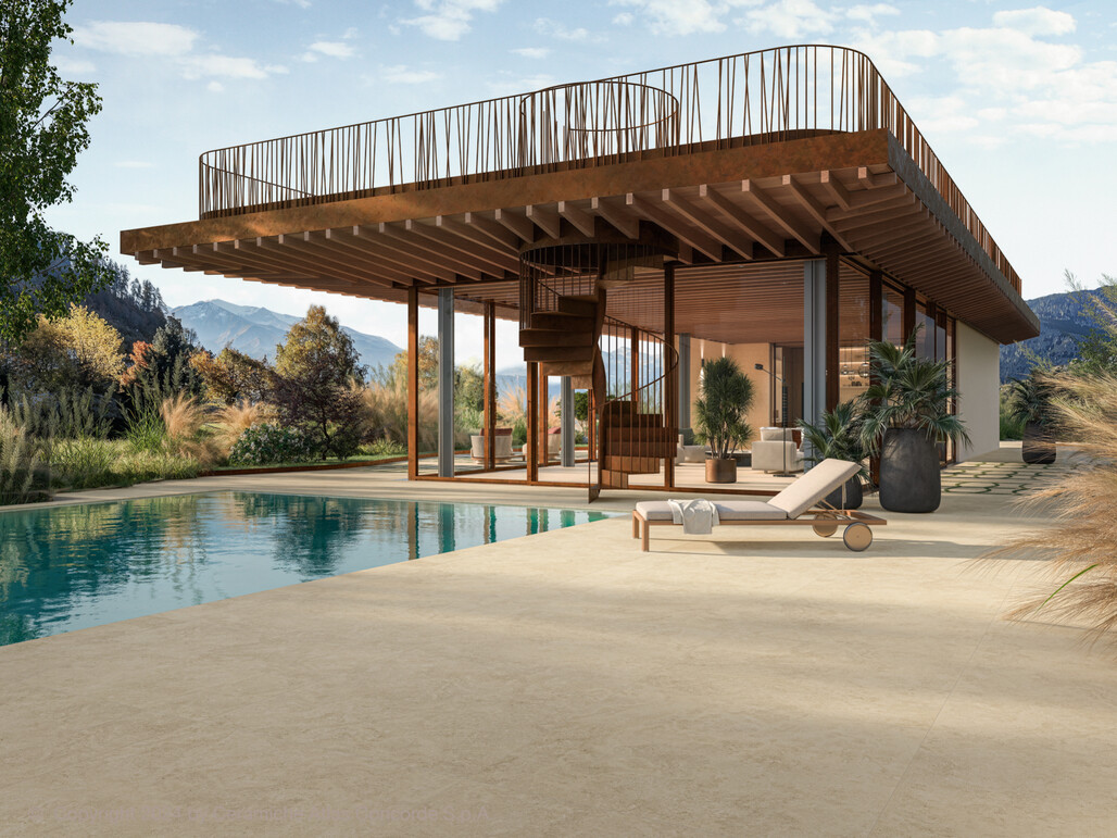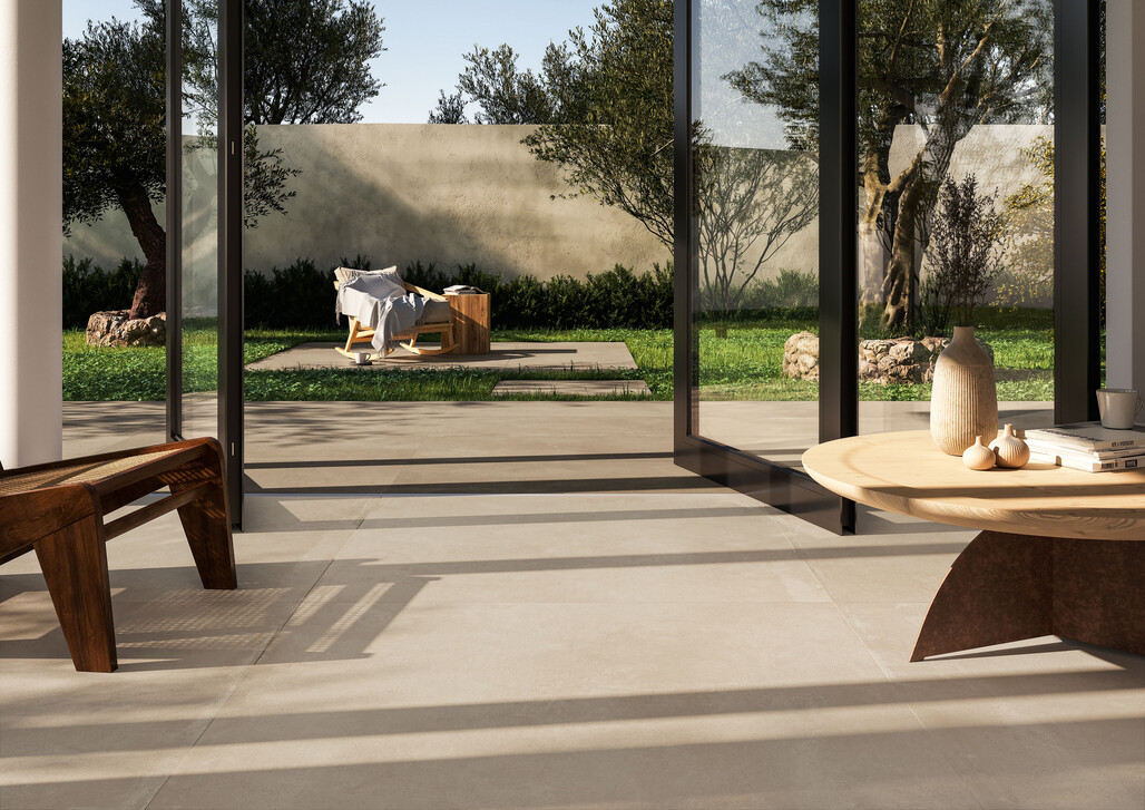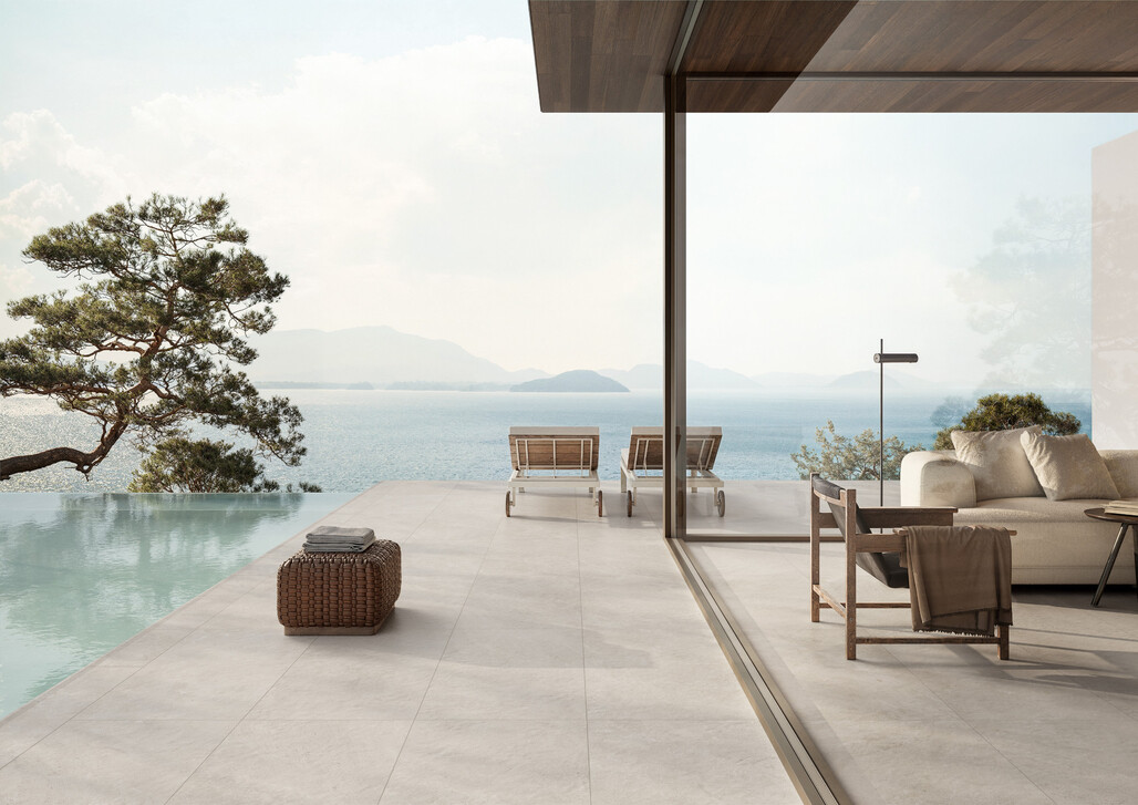Ein großer Trend in modernen Wohnlandschaften sind fließende Übergänge zwischen Innen- und Außenbereich. Terrassenplatten aus Feinsteinzeug bieten hierfür ideale Voraussetzungen. Denn Feinsteinzeug ist das einzige Material, dass sich gleichermaßen für innen und außen eignet.